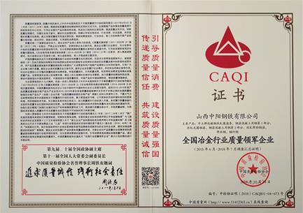 据了解,“全国冶金行业质量领军企业”和“全国质量检验稳定合格产品”对入选企业有着严格的标准,不但需企业在省级、国家级产品质量监督抽查过程中无不合格记录,并且近3年在相关质量检测中无任何不合格记录;而且更要求企业在2015年6月至2018年7月间未发生过任何质量安全责任事故,质量管理体系健全、售后服务制度完善、有社会责任感、讲诚信重质量,并在各行业、各地区具有广泛代表性。